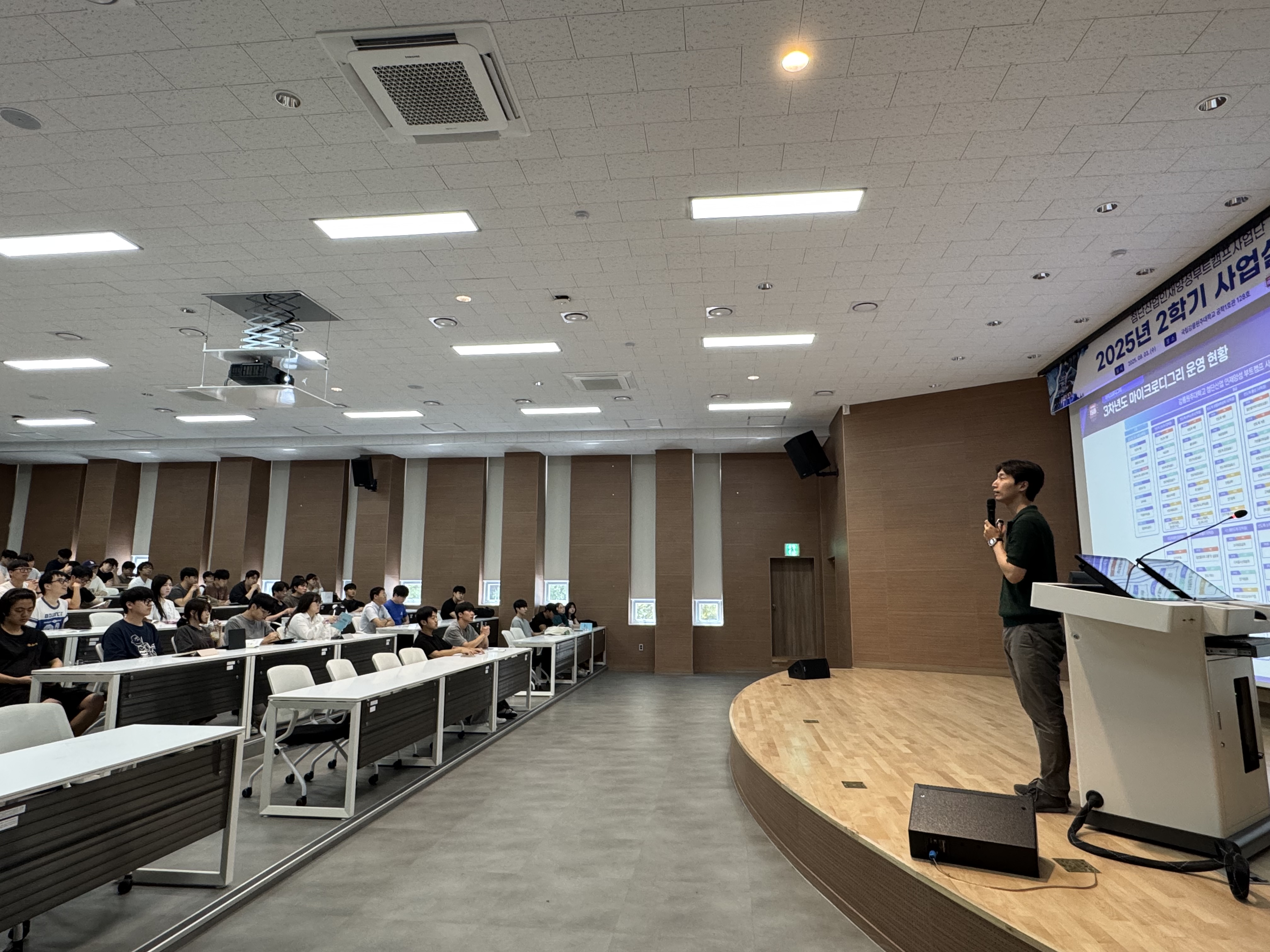 첨단산업 인재양성 부트캠프사업단은 지난 9월 3일(수) 사업설명회를 개최하였다. 이번 설명회에서는 교육 프로그램 안내, 글로벌 연수 프로그램 변경 안내, 25년 비교과 프로그램 안내 등을 진행하였다. 사업단의 목표, 커리큘럼, 지원 혜택 등을 설명하여 사업 참여와 관련하여 학생들의 궁금증을 해소하는 시간이 되었다.