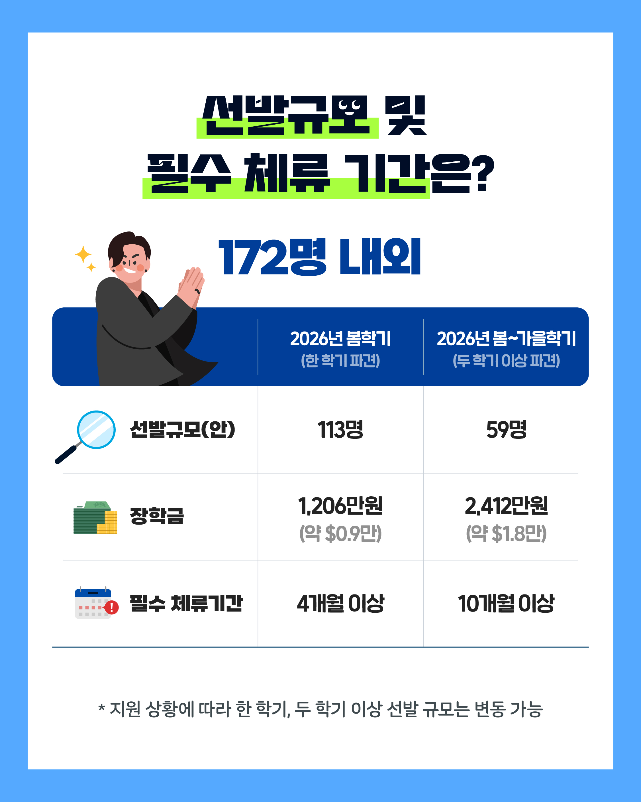 - 2026년 봄학기~2026년 가을학기(두 학기 이상 파견): 59명