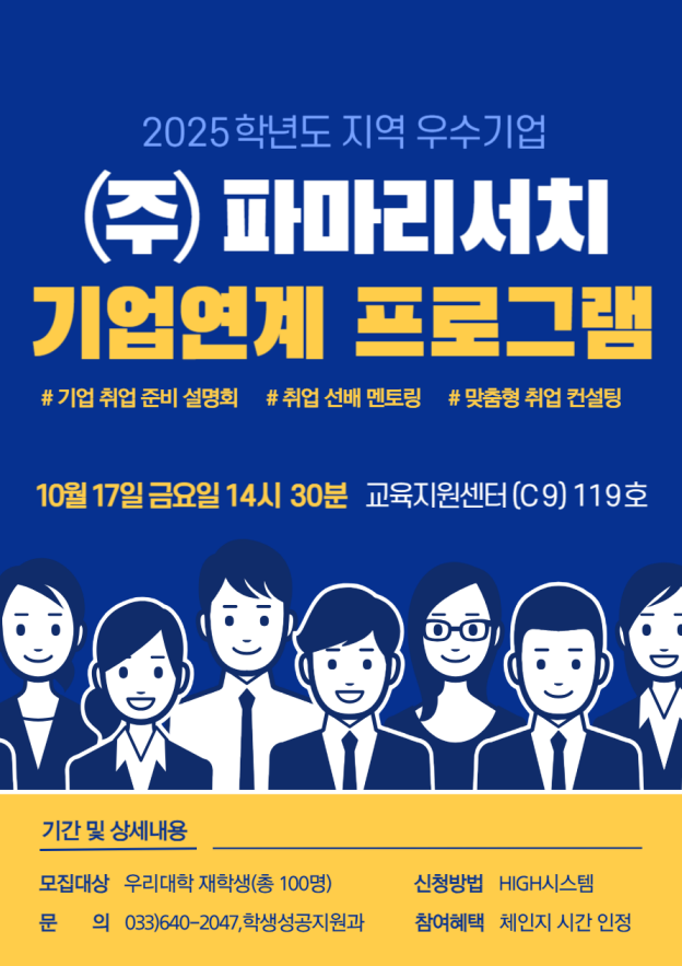 - (㈜파마리서치) 2025. 10. 17.(금) 14:00 ~ 16:00, 교육지원센터(C9) 119호