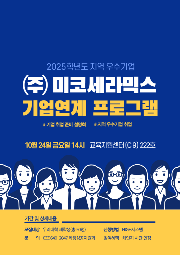 - (㈜미코세라믹스) 2025. 10. 24.(금) 14:00 ~ 16:00, 교육지원센터(C9) 222호