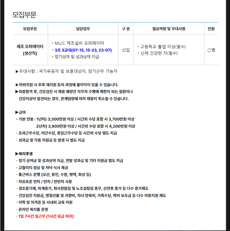 [삼화콘덴서공업(주)] 제조 오퍼레이터 채용 공고입니다.
